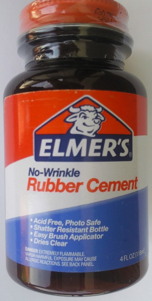 - ELMER'S NO WRINKLE RUBBER CEMENT w Brush Applicator, Photo Safe 4 oz E904