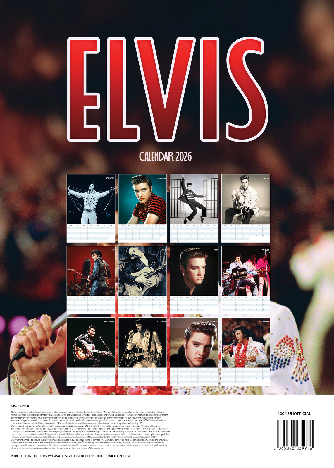 - Elvis Presley 2026 Calendar – King of Rock ‘n’ Roll, Forever in the Spotlight
