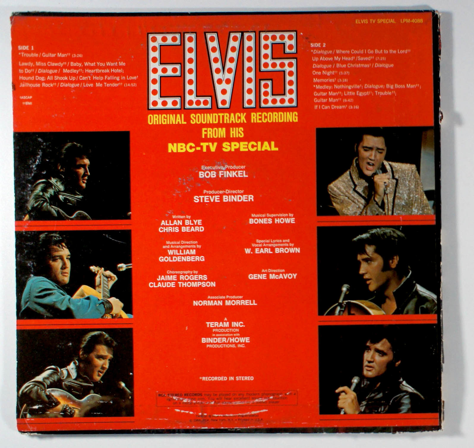 Elvis (TV Special), by Elvis Presley, released in November 1968, is the soundtrack to the iconic NBC television special, often referred to as the "Comeback Special," which marked a pivotal moment in revitalizing his career after years of declining popularity due to formulaic films and soundtracks. Recorded primarily in June 1968, the album captures the raw energy of Presley?s live performances, blending new songs, classic hits, and gospel medleys, showcasing his vocal versatility and charisma. Historically significant for its role in reintroducing Elvis as a dynamic live performer, the special and its soundtrack reestablished him as a cultural force, drawing massive viewership and critical acclaim. The album features the hit single If I Can Dream, a powerful, socially conscious ballad inspired by Martin Luther King Jr.'s speeches, which peaked at No. 12 on the Billboard Hot 100. Other notable tracks include Heartbreak Hotel, Hound Dog, and Jailhouse Rock, though these were re-recordings of earlier hits rather than new singles.