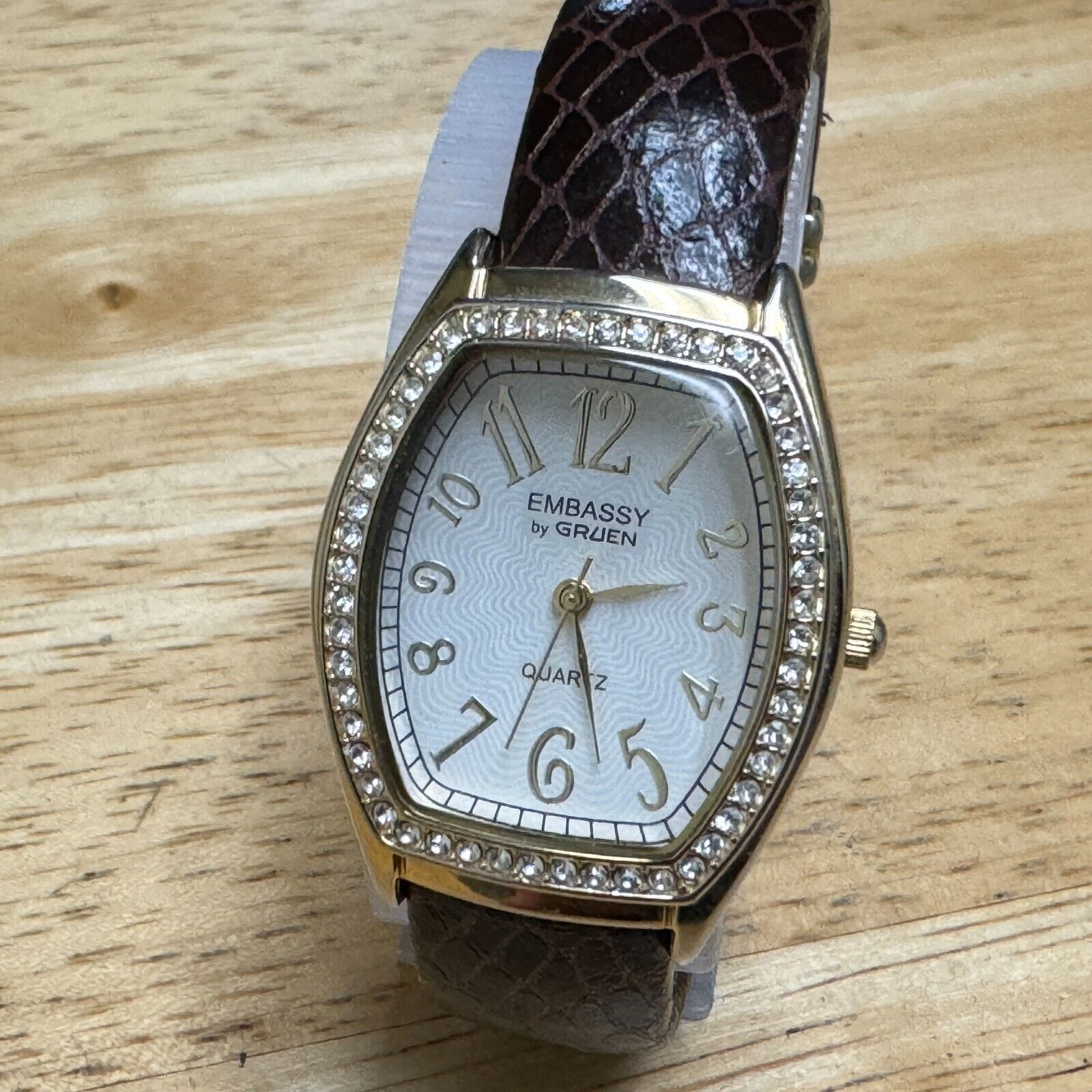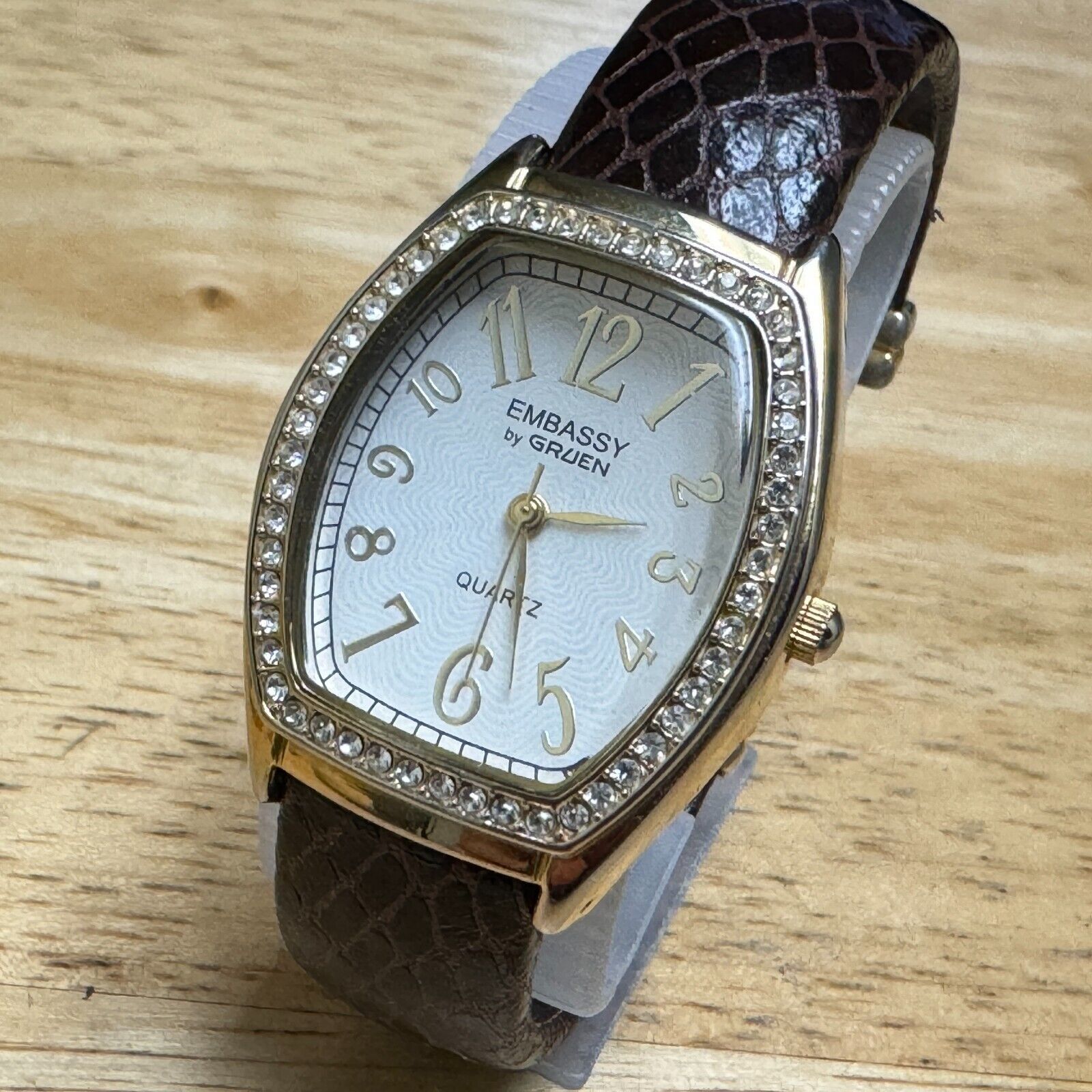 - Embassy Gruen Quartz Watch Women Gold Tone Rhinestone Cuff Bangle New Battery