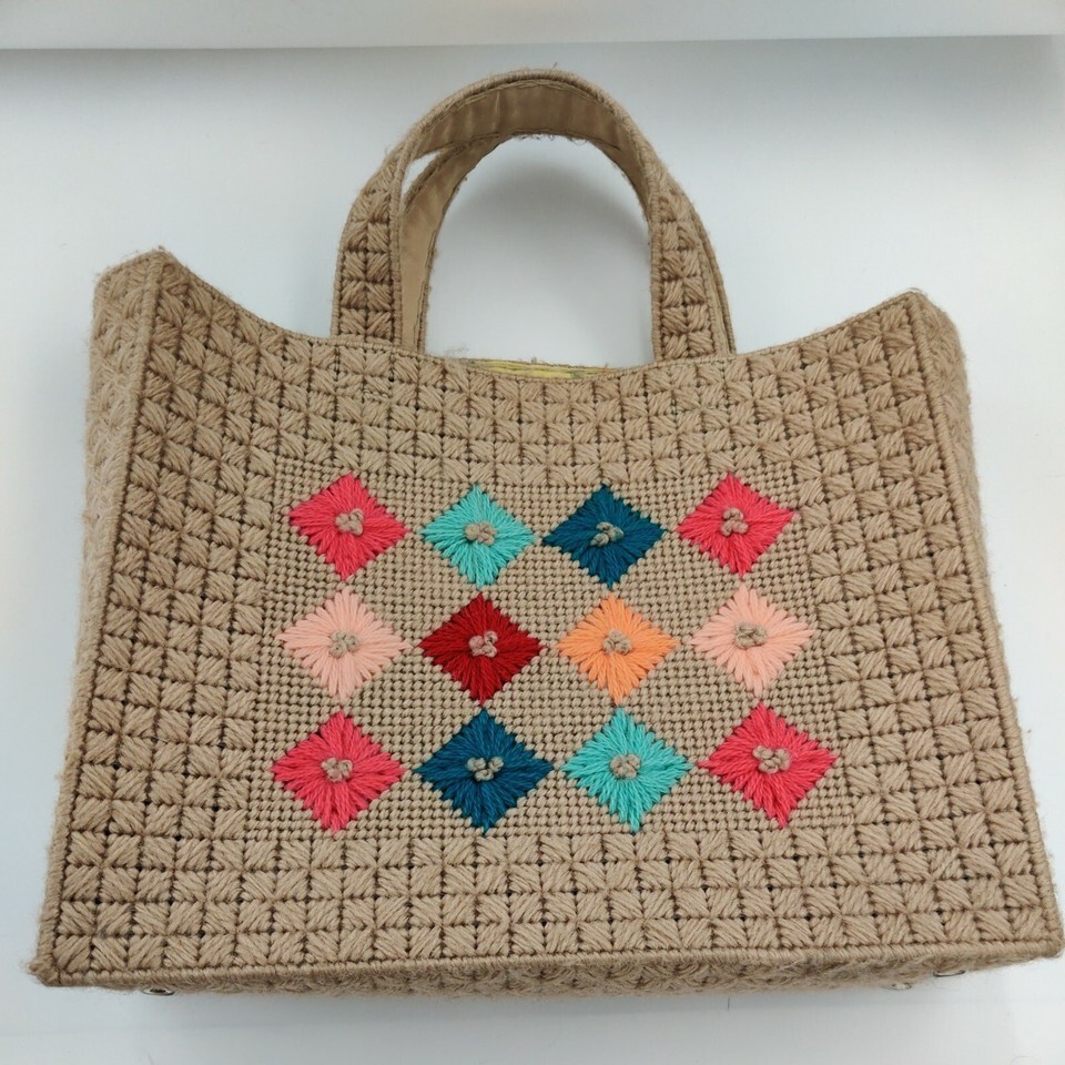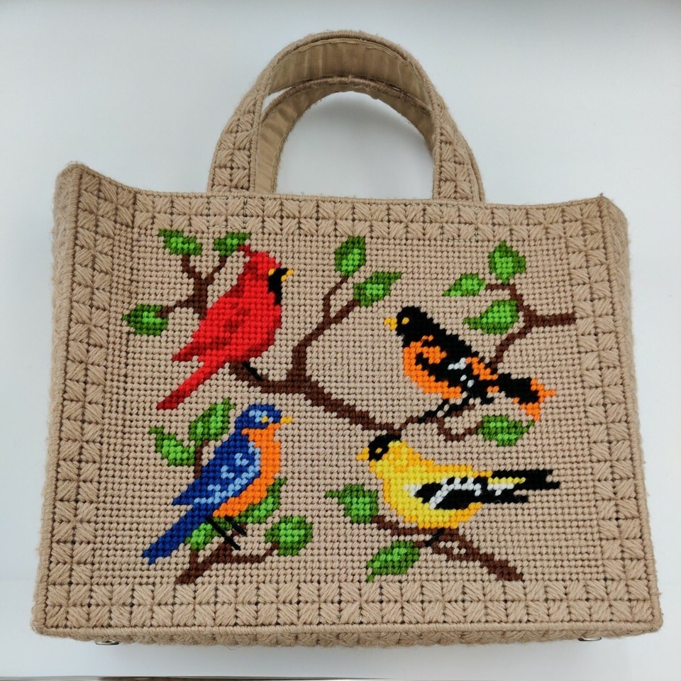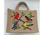 - Embroidered Beige Colorful Birds Cardinal Jay Homemade Lined Handbag Bag