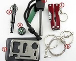 Emergency SOS Self-Help Box Tool Set for Camping, Hiking, Hunting, Biking, Climbing, Traveling and Emergency. Portable pocket size fire starter, knife, compass, whistle, saw, multipurpose flash light pliers.
