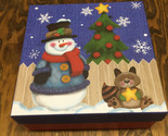 - Empty Christmas decorative cardboard box winter scene with snow man on cover