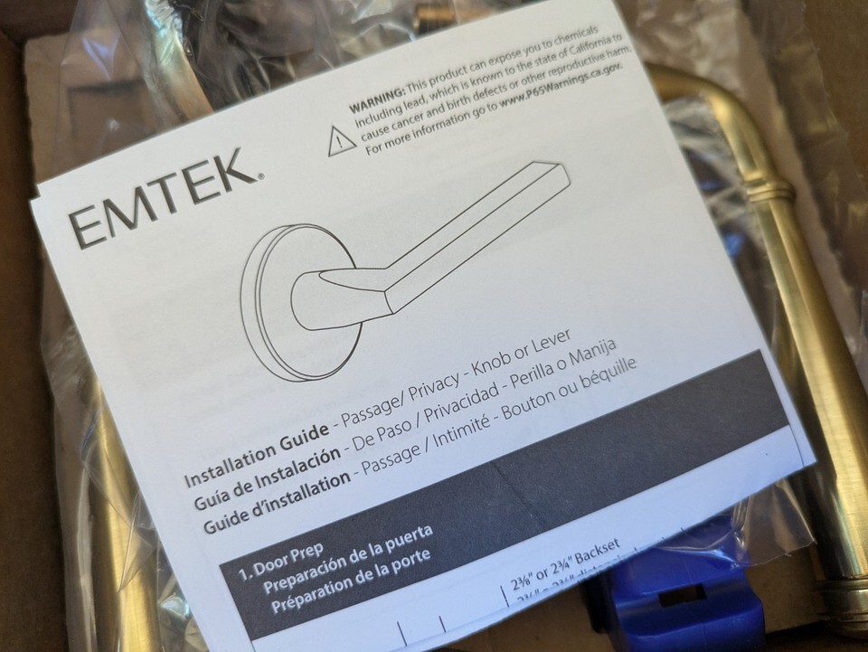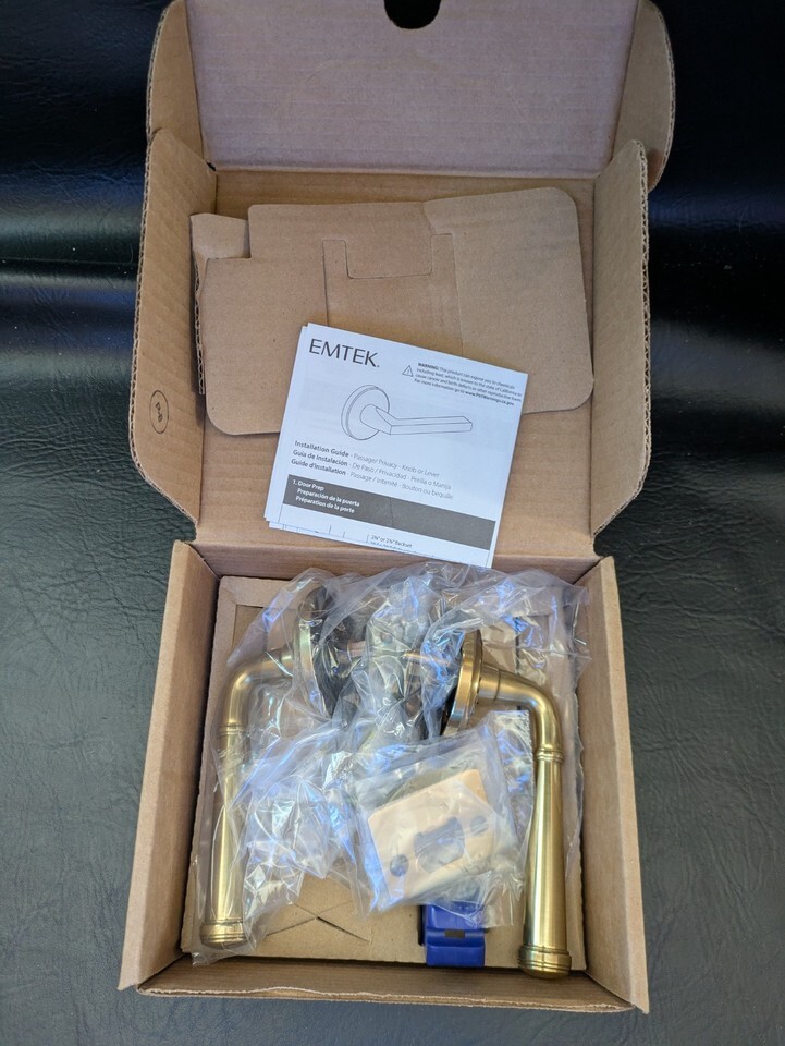 - Emtek 8101 Passage Rope Rosette Merrimack Lever Brass LH US7 Box NEW