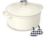 - Enameled Cast Iron Dutch Oven 5QT Pot w/ Lid & Potholders Cream White Heavy Duty