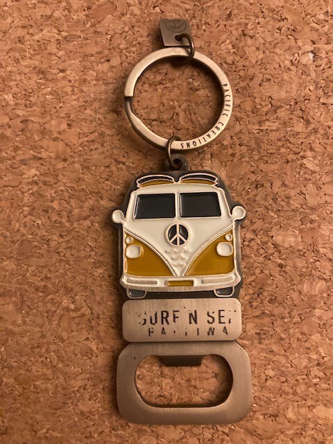 - Enameled Hippie Surfer Van Keychain/ Bottle Opener
