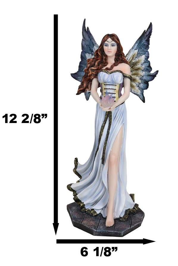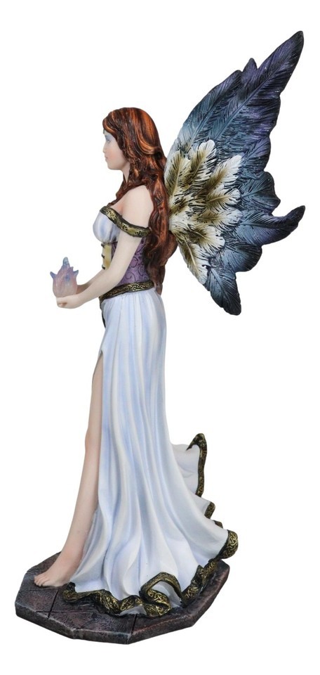 - Enchanted Fantasy Damsel Fairy In White Corset Gown Holding Blue Flame Figurine