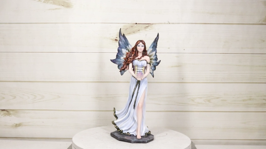 ? This Standing Fairy With Blue Flame is made of polyresin, hand crafted and painted individually.
