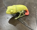 This Enesco Home Grown figurine features a colorful chameleon perched on a banana pepper, adding a playful touch to any collection. Measuring 4 inches in length, 2 inches in height, and 2 inches in width, this figurine is perfect for small spaces. The item is part of the "Home Grown" collection and is an original piece with retired features. It comes unboxed and is perfect for those who love animals and dinosaurs. The figurine is in great shape and would make a wonderful gift for someone who is retiring.