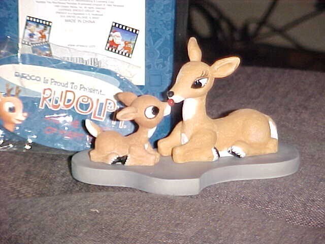Hello everyone, now at bottom of each of our item page is our rating plush chart. Please check it out and read full item description before using the buy it now price. Ok here's a Rare Enesco Resin Rudolph Always Perfect In Mom's Eyes Figurine, which is in mint use condition, comes with mini card, box (edge corners tip wear), and original Styrofoam. Number # 112067. Measures almost 4 1/2 inches wide and 3 inches tall. Please see picture. Winner bidder pays by Zone and Zip Code for priority mail shipping (2 lbs) handling and insurance (3.25), plus required delivery confirmation US only. Sorry we do Not Ship to Canada or Internationally. Please only bid if you have a United States street address to ship to. Immediate Paypal payment is required with buy it now, E-Checks from Paypal are held 3-5 business days until it clears before item is ship. Since we are limited on our picture space, pic will be deleted after the end of auction, so if you would like to see pic after the auction, please print out picture before the auction ends. We due not do returns, so Please read full item description, all sales are final and are sold as worded in item description. All items are offer as is condition. Please take a moment and check out our other great Disney plush and character toys which are listed sale this week. New Rating Plush Chart. NEW: Comes from a factory or department store and has not played with. MINT Or LIKE-NEW: Looks new but might still been played with but shows no wear on the Plush itself but still might have a very slight minor flaw (like a odor, etc., and might not been wash even though we strive very hard to make all our plush smell free but can not guaranteed them) EX. COND: Some minor play wear and might have some minor flaws which would be in the item description. VERY GOOD: Has been played with and has flaws. GOOD: Has been played with a lot. POOR: We try not to sell any real poor condition toys. Thank-You and Have A Fantastic Week