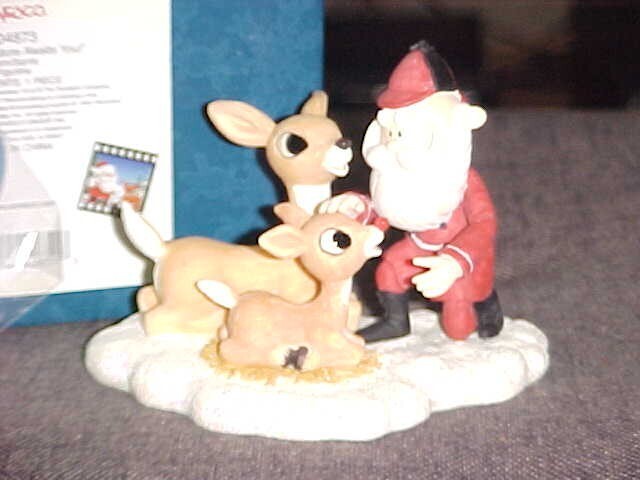 Hello everyone, now at bottom of each of our item page is our rating plush chart. Please check it out and read full item description before using the buy it now price. Ok here's a Rare Enesco Resin Rudolph Mom and Santa called "A Bright Future Awaits You" Figurine, which is in mint use condition, comes with mini card, box (edge corners tip wear), and original Styrofoam. Number # 104873. Measures almost 4 inches wide and 3 inches tall. Please see picture. Winner bidder pays by Zone and Zip Code for priority mail shipping (2 lbs) handling and insurance (3.25), plus required delivery confirmation US only. Sorry we do Not Ship to Canada or Internationally. Please only bid if you have a United States street address to ship to. Immediate Paypal payment is required with buy it now, E-Checks from Paypal are held 3-5 business days until it clears before item is ship. Since we are limited on our picture space, pic will be deleted after the end of auction, so if you would like to see pic after the auction, please print out picture before the auction ends. We due not do returns, so Please read full item description, all sales are final and are sold as worded in item description. All items are offer as is condition. Please take a moment and check out our other great Disney plush and character toys which are listed sale this week. New Rating Plush Chart. NEW: Comes from a factory or department store and has not played with. MINT Or LIKE-NEW: Looks new but might still been played with but shows no wear on the Plush itself but still might have a very slight minor flaw (like a odor, etc., and might not been wash even though we strive very hard to make all our plush smell free but can not guaranteed them) EX. COND: Some minor play wear and might have some minor flaws which would be in the item description. VERY GOOD: Has been played with and has flaws. GOOD: Has been played with a lot. POOR: We try not to sell any real poor condition toys. Thank-You and Have A Fantastic Week