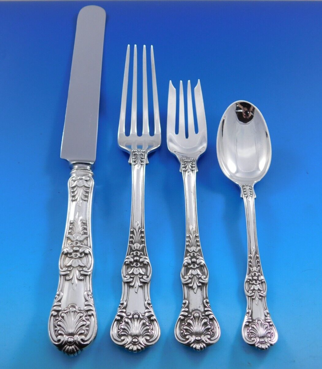 Dinner Size English King by Tiffany Co. sterling silver Flatware set, 72 pieces. This set includes: