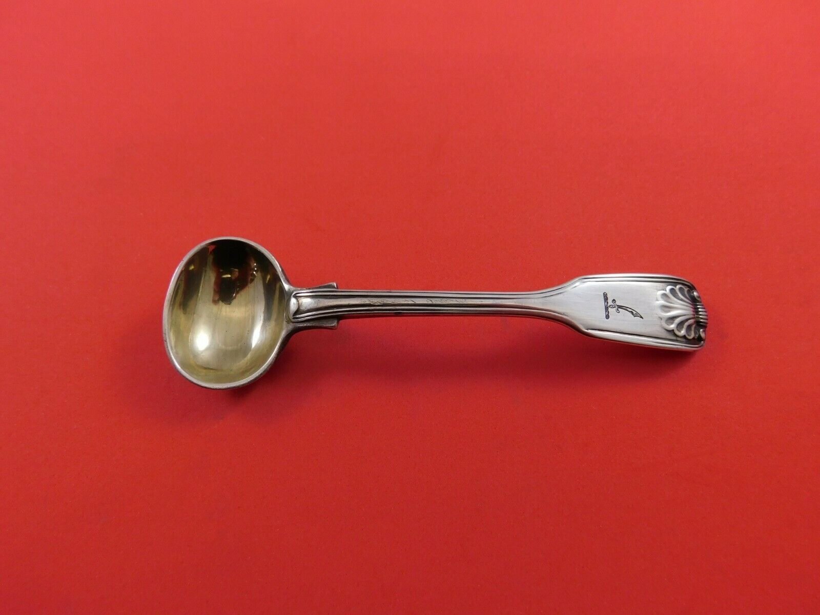 English sterling silver Master Salt Spoon 4 1/4" gold washed, engraved, London 1828. It is monogrammed (as shown) and is in excellent condition.