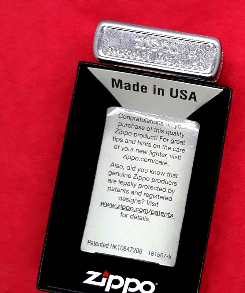 comes unfilled. Use Zippo premium fluid Genuine Zippo windproof with distinctive Zippo "click".
