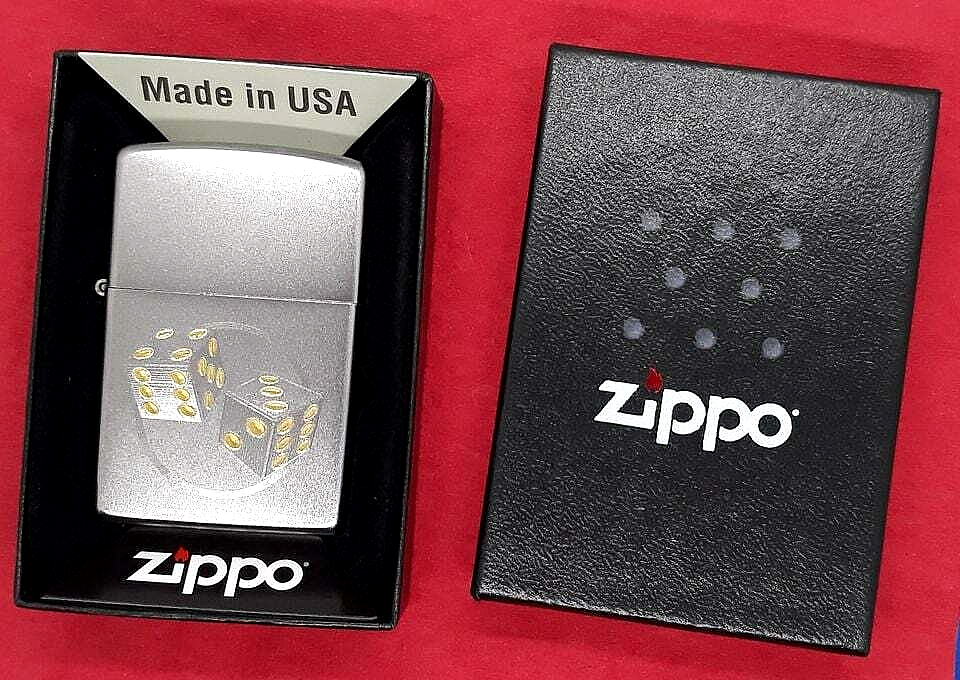 - Engraved Dice - Authentic Zippo Satin Chrome Finish