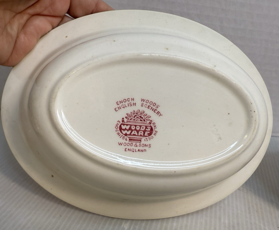Enoch Woods Ware English Scenery Bowls & Gravy/ Cream Pink, Red Transferware
