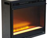 Enjoy the cozy feel of a cracklin? fireplace without the hassle, maintenance or cleanup. Available as an addition on select TV stands and entertainment centers, this fireplace insert includes an electric flame feature that operates with or without heat, six-level temperature setting, five levels of brightness and remote control?along with an overheating control device for added safety. Faux crystals enhance the flickering flame; or mix in stones for a natural touch (all included).Additional DimensionsCord length: 72"Product Features Electric fireplace insert provides up to 4,608 BTU/1,400W and warms up to 400 square feet (heats a mid-size room) 6-level temperature setting; 5 levels of flame brightness LED-lit flame operates with or without heat Option for placing faux glass crystals or stones (included) Overheating control device Remote control with LED display Power cord included; UL Listed Assembly required Entertainment Accessories - Fireplace Insert Glass/Stone - Black24.0"W x 8.38"D x 20.0"H - 42.0 lb