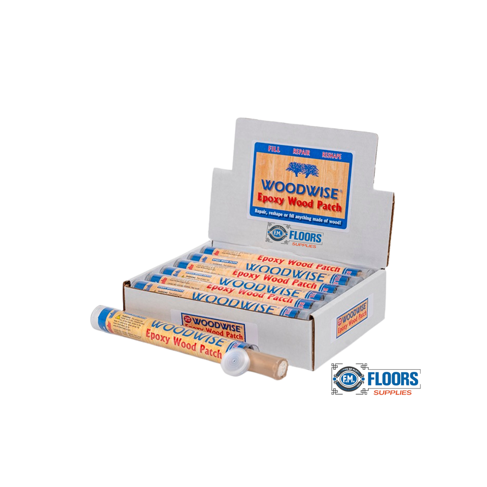 WOODWISE Epoxy Wood Patch is a fast-setting polymer compound that enables permanent repairs to wood. Each stick contains pre-measured portions of activator and base throughout ? no measuring or mixing tools are necessary. The consistency (like modeling clay) allows the material to be shaped, formed and sculpted as needed before curing begins. Cured Epoxy Wood Patch has a hardness and density similar to wood. Once cured, it can be drilled, sawed, filed, carved, sanded, painted or stained. * Resistant to water, chemicals and temperature extremes. Contains no solvents or VOC?s. It?s non-flammable and releases no noxious fumes. It won?t shrink, rot or pull away. The unused portion stays fresh for future use when saved in its original package.Sold in 7? (2-oz) lengths. Individually packaged in reusable, clear plastic tubes. Packed 12 tubes per carton.*Accepts stain differently than surrounding wood. Always test for stain acceptance and color match before application. Dry pigments can be mixed in for tinting before application.