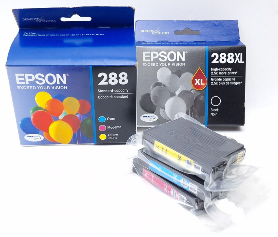 - Epson Genuine 288 Ink Set of 4 CMY OEM + 288XL Black + Extra lot NEW