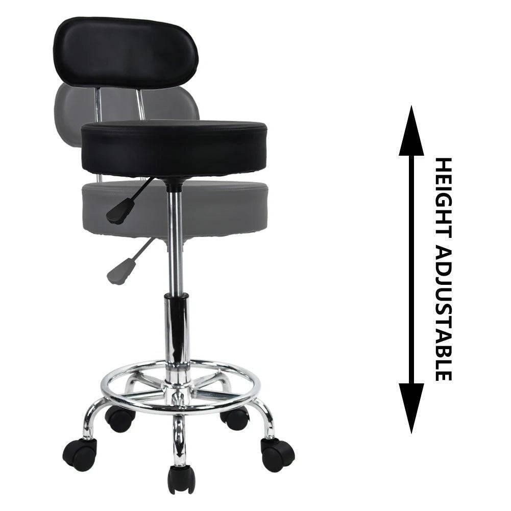 Transform your workspace with our Ergonomic Height Adjustable PU Leather Rolling Stool with Footrest for Office and Home Use. Experience ultimate comfort and functionality designed for both office and home environments. This versatile stool is perfect for a variety of settings, including salons, spas, tattoo parlors, facial treatments, and even your home kitchen! Key Features: Adjustable Height: Easily customize the seat height from 20.5 to 26.5 inches to suit your specific needs. Spacious Seating: Enjoy a comfortable seating diameter of 13.8 inches, providing ample space for extended use. Supportive Backrest: The 8.7-inch backrest is ergonomically designed to offer optimal support, ensuring you stay comfortable throughout your tasks. Premium Cushion: Featuring a 3.15-inch thick PU leather cushion, this stool is not only waterproof and wear-resistant but also easy to clean and maintain. Versatile Use: Ideal for various applications such as office work, massage therapy, and beauty treatments. Effortless Assembly: With simple instructions, any adult can assemble this stool in just 5 minutes. Why choose our rolling stool? Whether you're working in a professional setting or just need extra seating at home, this Ergonomic Height Adjustable PU Leather Rolling Stool with Footrest for Office and Home Use combines style and practicality. Its sleek design, paired with high-quality materials, makes it an excellent addition to any workspace. Elevate your comfort and productivity today! Don't miss out on enhancing your workspace with this stylish and functional stool. Order your Ergonomic Height Adjustable PU Leather Rolling Stool with Footrest now! Product Specifications: Height: 20.5" - 26.5" Seating Diameter: 13.8" Backrest Height: 8.7" Cushion Thickness: 3.15"