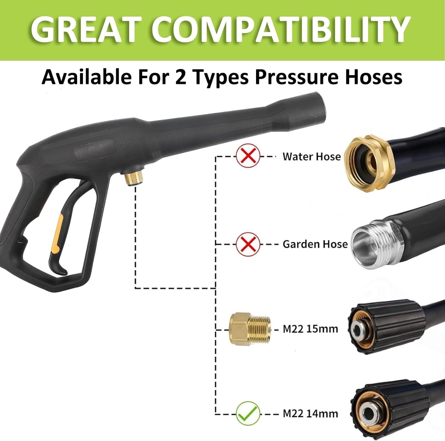 Features: Quick Connect,Compatible with Greenworks,Compatible with Karcher,Compatible with Ryobi,Compatible with Homelite,Compatible with PowerStroke,Superior Quality,No Leakage,Ergonomic Design,Safety Lock Trigger,Non-slip Grip,Multiple Applications