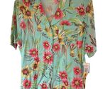 - Erika Womens Floral Medley Print Short Sleeve Button-Up Blouse M Cotton & Rayon