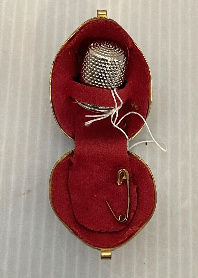 - Ernst Steiner Antique Blue Enamel Walnut Sewing Kit