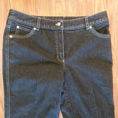 - Escada Jeans Womens 10 Italy 40 Black Gold Stitch Straight Leg Mid Rise Stretch