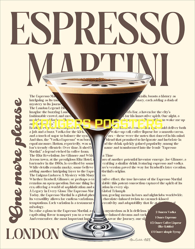 - ESPRESSO MARTINI COCKTAIL DRINK ART POSTER - ALICE CASTELLO - KRUGERS POSTERS