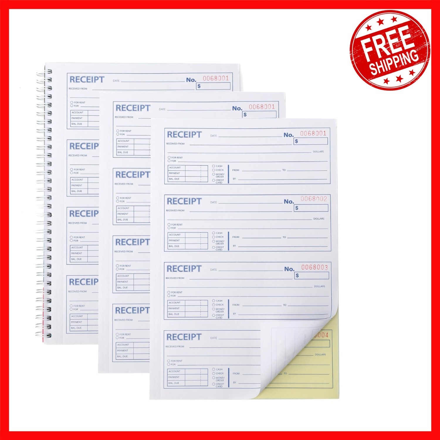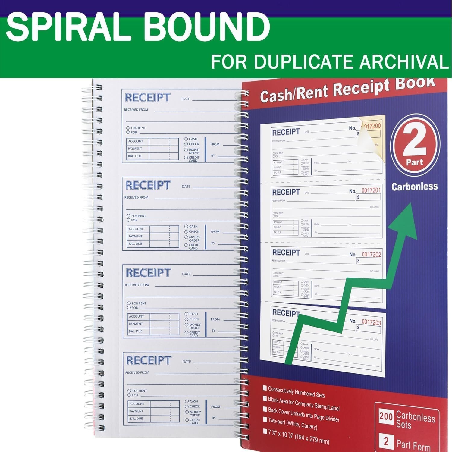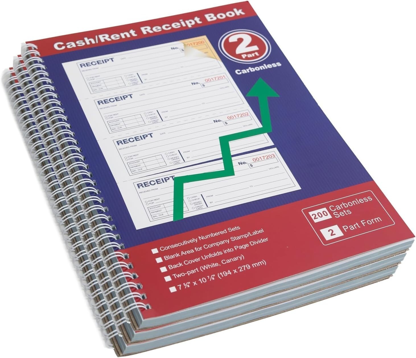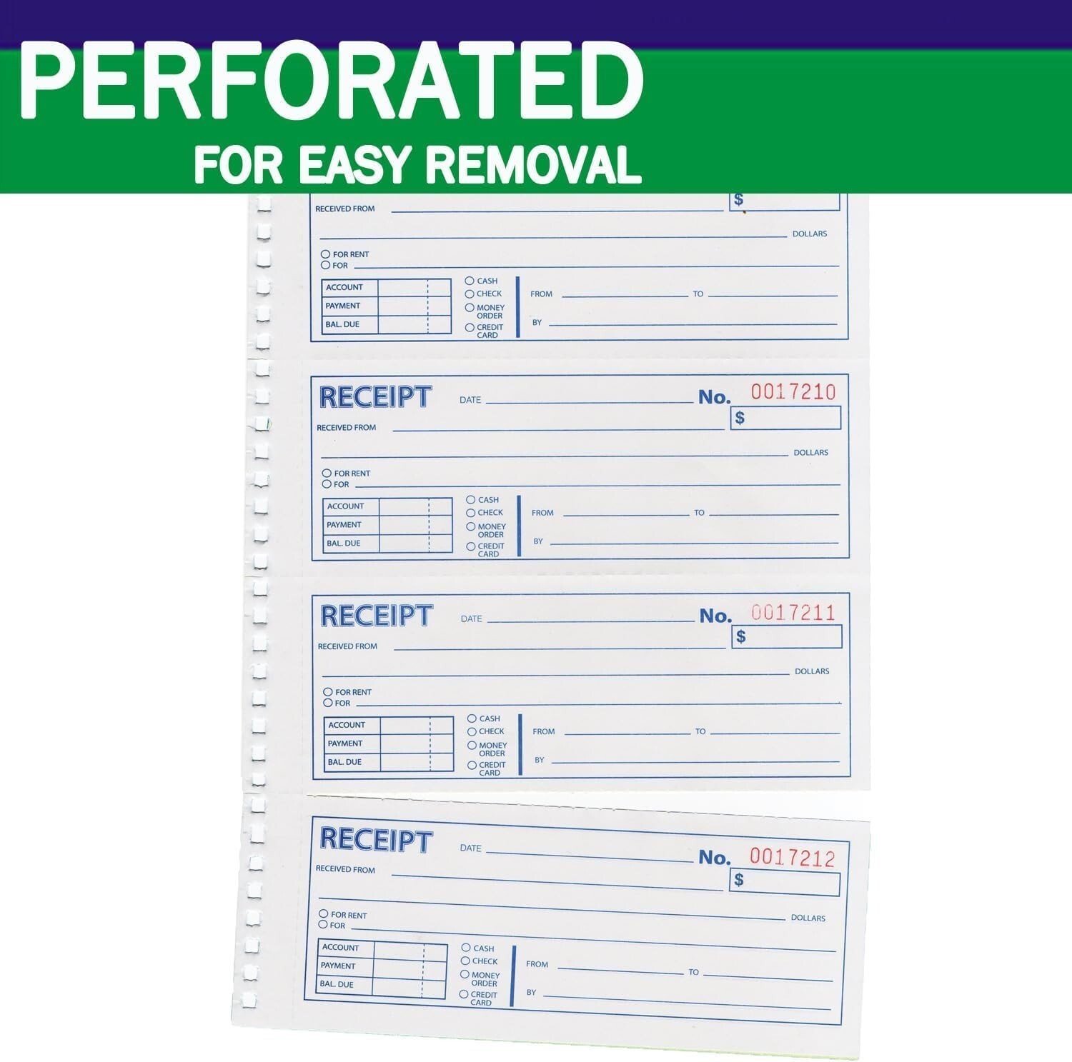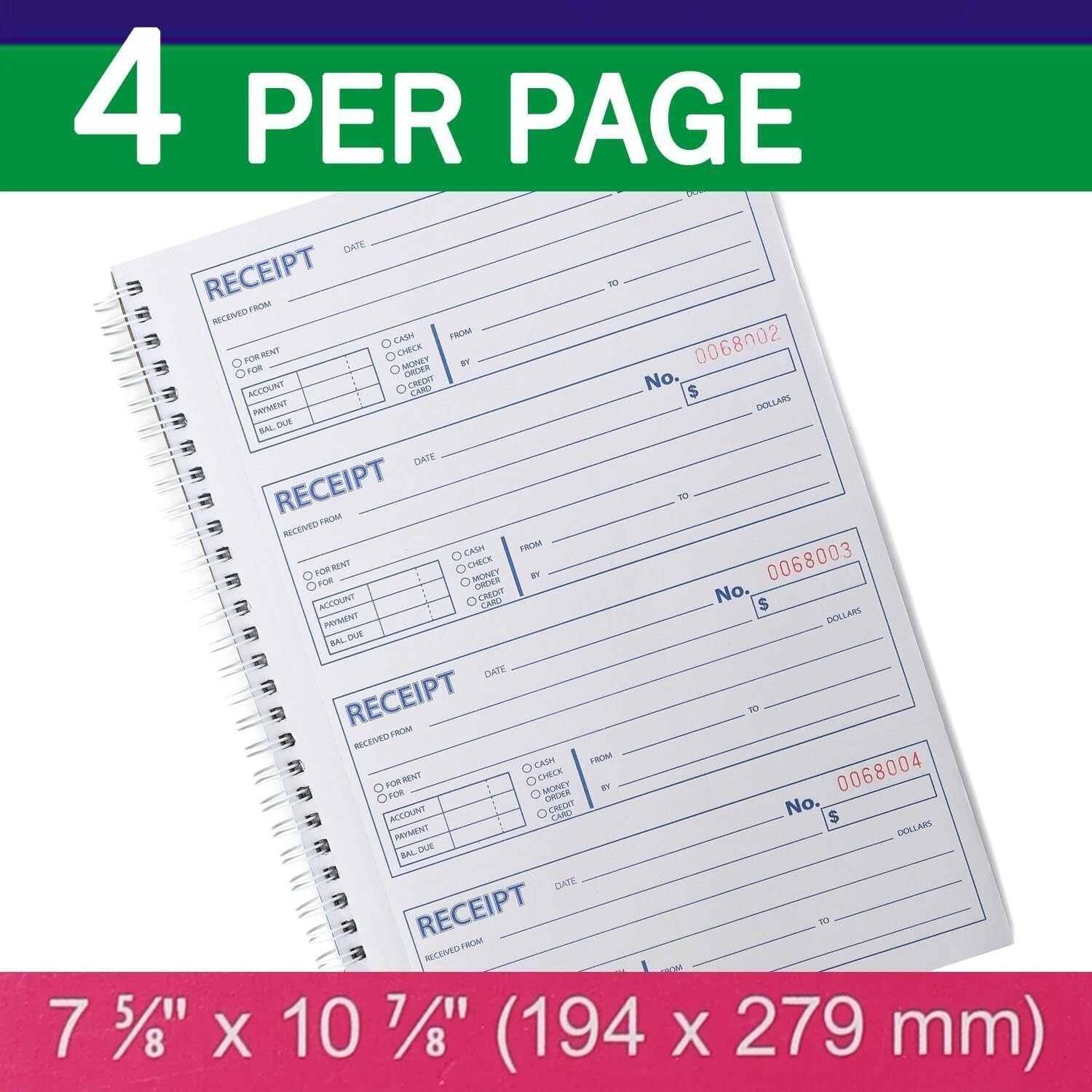 This professional-grade receipt book offers long-lasting utility with 100 sheets per book, totaling 400 sets for extended use. Featuring two-part carbonless copy paper, it ensures clean, legible duplicates for your records. The spiral bound design allows for easy flipping and writing, while each page provides ample space to record four receipts with detailed transaction information. Perfect for landlords, businesses, and individuals, this tool helps you efficiently track rental cash flow and manage paperwork with 4 perforated copies per page and a unique 6-digit numbering system. Maintain a permanent, organized record of transactions with this reliable and user-friendly receipt book.