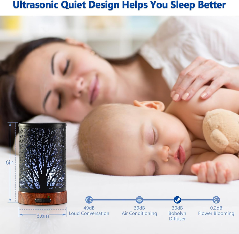 Whisper Quiet Ultrasonic Technology: Essential Oil Diffuser adopted advanced ultrasonic technology, it is extremely quiet without annoying noise that won't disturb you when you sleep or at work. No heat is used, making it safe for kids and pets.
