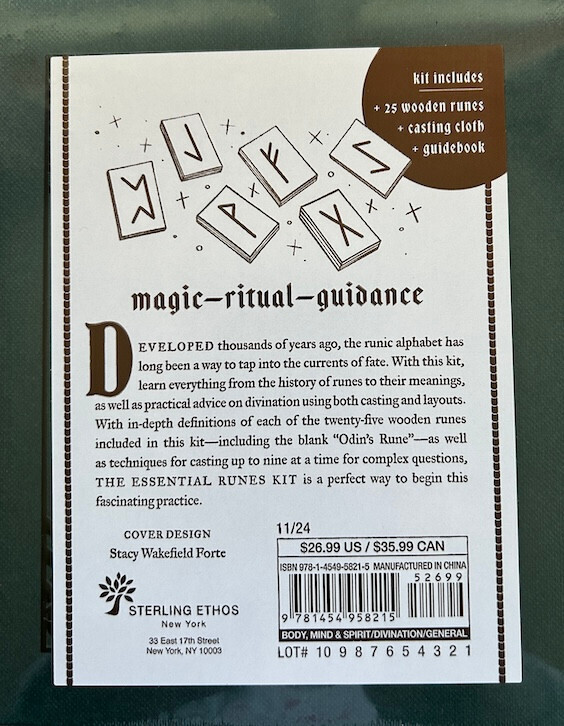 Kit includes 25 wooden runes, casting cloth, and guidebook.