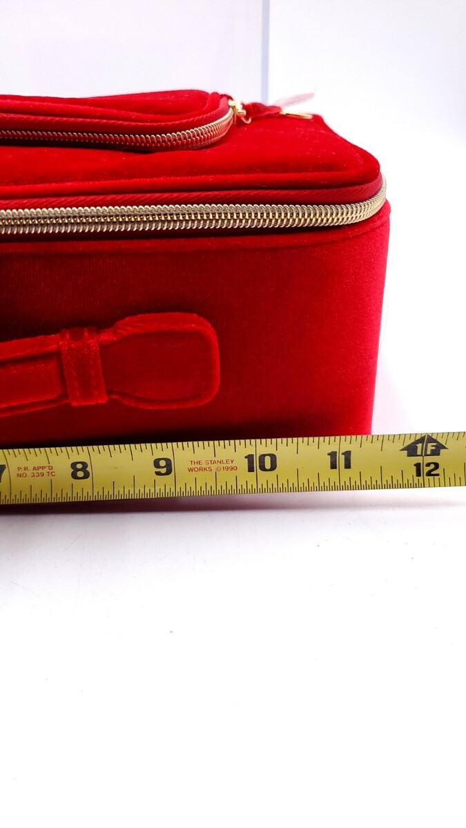 Estee Lauder Star Train Case Bag 2023 Limited Edition Red Velvet with Handle. Great for Christmas this year. Please review photos for item details. Give me a follow as I list from estate sales for new and vintage items.
