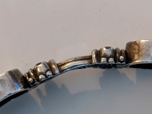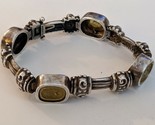 Up for sale is a gently used Esti Frederica 18k Yellow Gold oval madallion set in 925 Sterling Silver Intaglio Station Bracelet. The bracelet measures approx. 7" long X 1/2" with 4 intaglio stations. Total weight 40.4 grams.