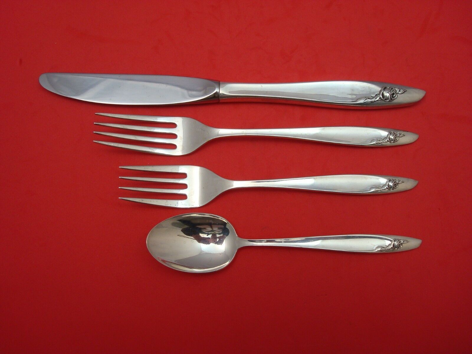 Beautiful ESTATE ETERNAL ROSE BY ALVIN sterling silver 4-pc REGULAR SIZE place setting in excellent condition. This setting includes the following pieces: