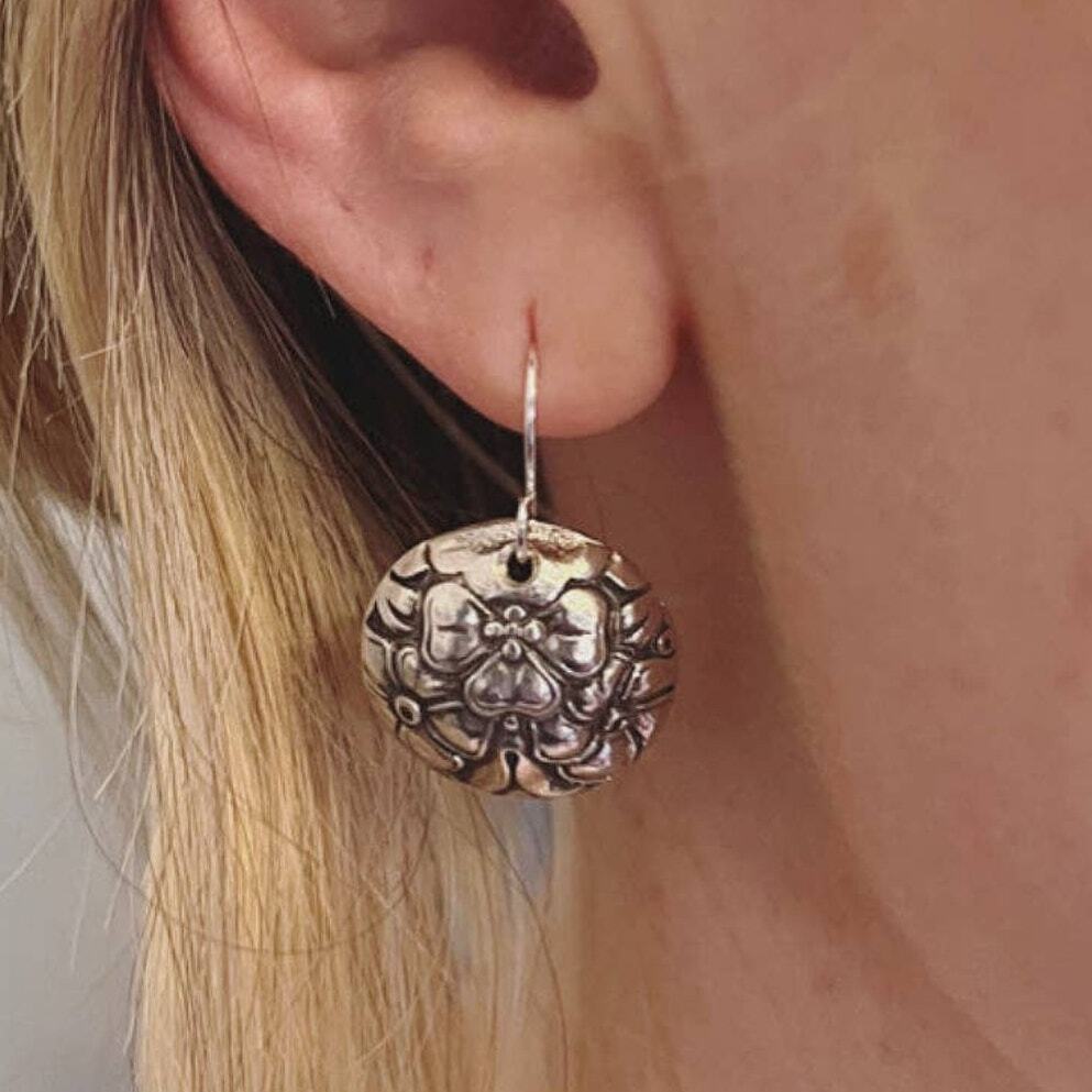 Eternally Yours Floral Knife Handle Round Dangle Earrings