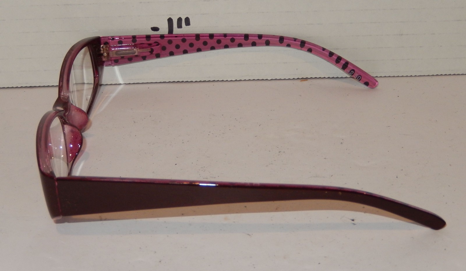 - Etienne Aigner Reading Glasses +2.00 Burgundy Pink Polka Dot Rectangular Frame