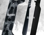 Product description: Sax Blade Style Machete 440 Stainless Steel BladeThis machete has a blade made out of 440 stainless steel and has a blade style of a Sax machete or sheep's foot. This blade style assists the user for greater cutting and chopping control with a long edge and sheep's foot spine. The handle is made out of composite plastic in a grey/black camo pattern. The handle also features a lanyard hole should the user want to attach something to the handle and is secured to the tang with four screws.