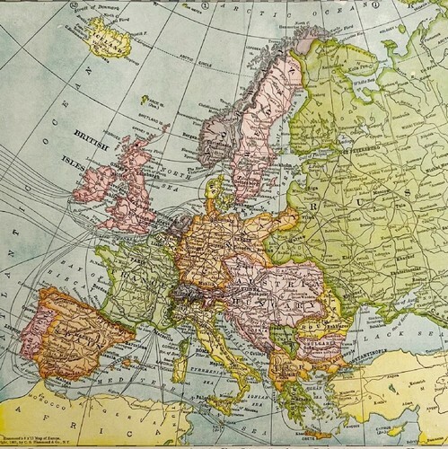 - Europe Map Lithograph 1909 Hammond Art Print Russia LGADMap