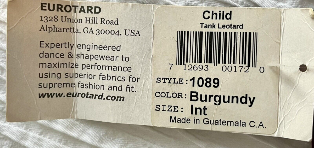 - Eurotard Child Burgundy Cami Dance Leotard, Size Int (6x-7) NEW