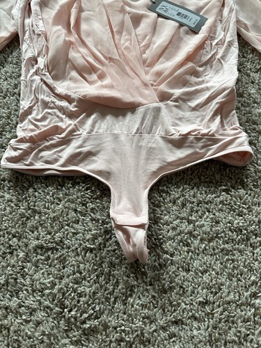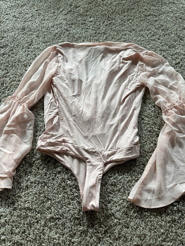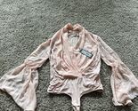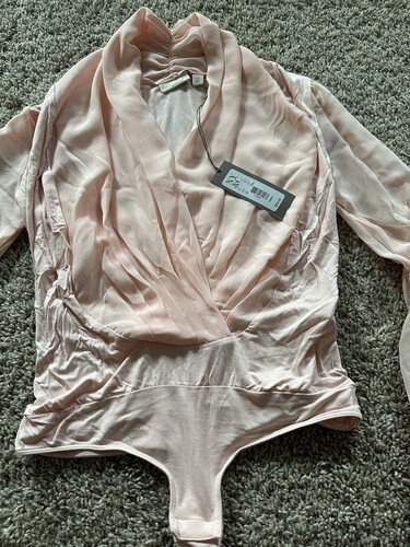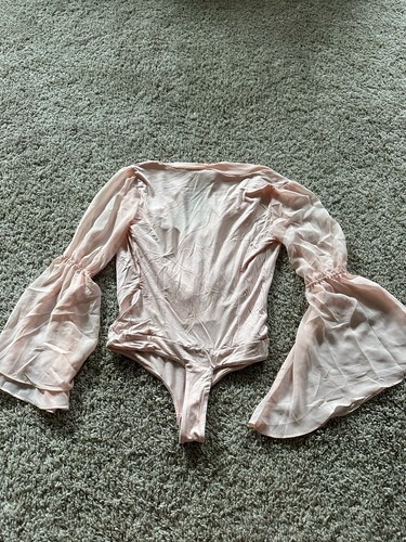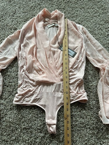 - Eva Mendes Pink Bell Long Sleeve Deep V- Neck Body Suit Size XS Top Sheer Sleeve