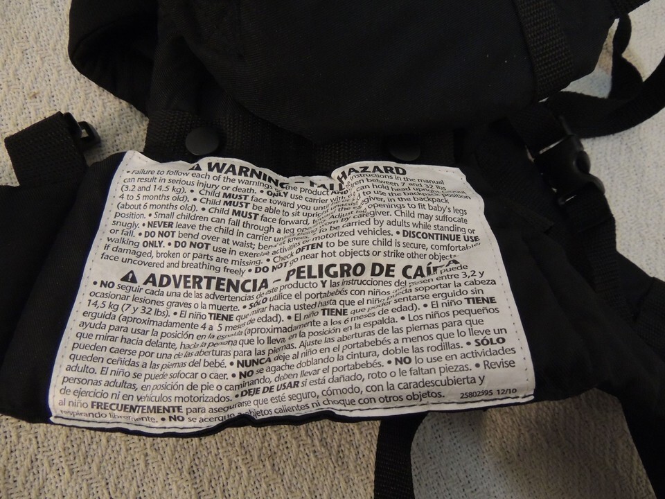 - Evenflo Front Facing Walking Baby Carrier Model No. 08511280 Black & Grey 50795