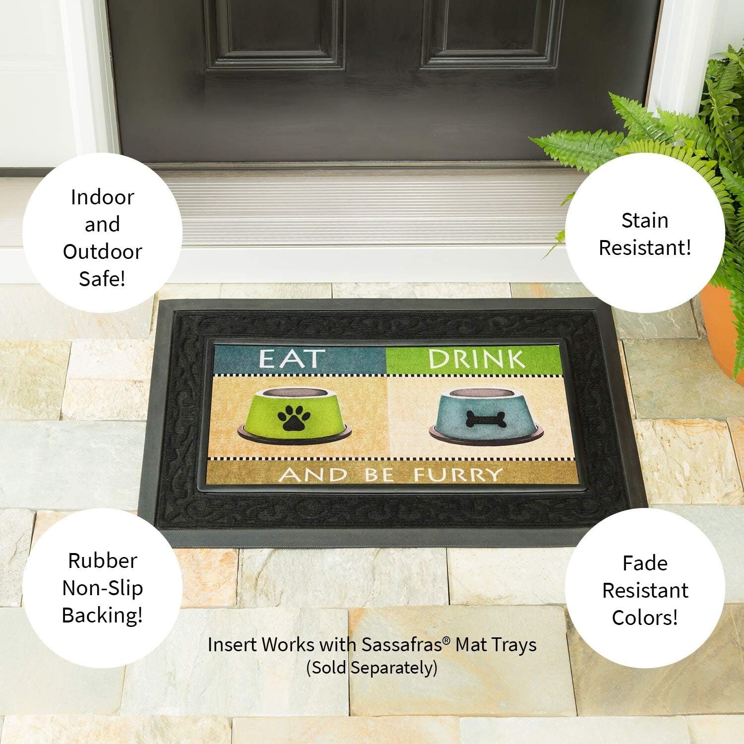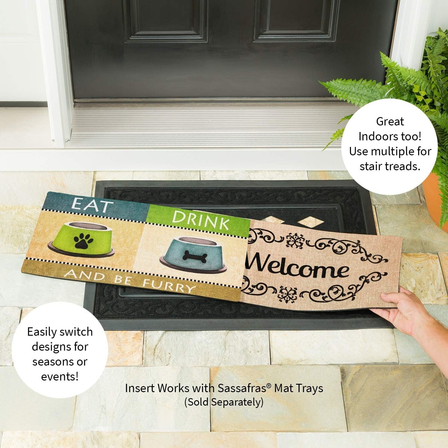 Our incredible Sassafras Mats are a fabulous way to have easy, year-round personality right at your doorstep! Interchangeable and durable, they welcome visitors and let everyone see your style. These mats are also a great gift idea for housewarming parties, new neighbors or for anyone who appreciates well-crafted home decor accents. Sassafras Switch Mats work with the Sassafras bases and are the perfect fit for our mat tray. Measures approximately 10 inches W x 22 inches L x 1/8 inch D. It is conveniently made from polyethylene with rubber backing to hold in place. Spot clean only.