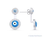 Evil Eye Enamel Bead CZ Crystal Stud Earrings w/ Drop Attachments in .925 Sterling Silver