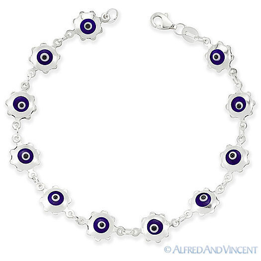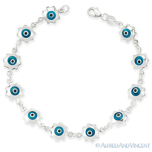 - Evil Eye Glass Bead Sun Charm Turkish Nazar Greek .925 Sterling Silver Bracelet