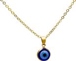 This small evil eye ward necklace is a great way to feel protected while still maintaining fashion. The gold colored chain is about 22 inches. The evil eye talisman is about .25 inches in diameter and is double-sided.