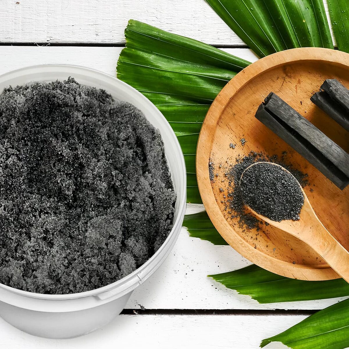 Ingredients: sodium chloride (dead sea salt), glycerin, prunus amygdalus dulcis (sweet almond) oil, simmondsia chinensis (jojoba) seed oil, avena sativa (oat) kernel extract, arnica montana flower extract, tocopherol (vitamin e), helianthus annuus (sunflower) seed oil, Carbo activates (Activated Charcoal), All Natural Fragrance