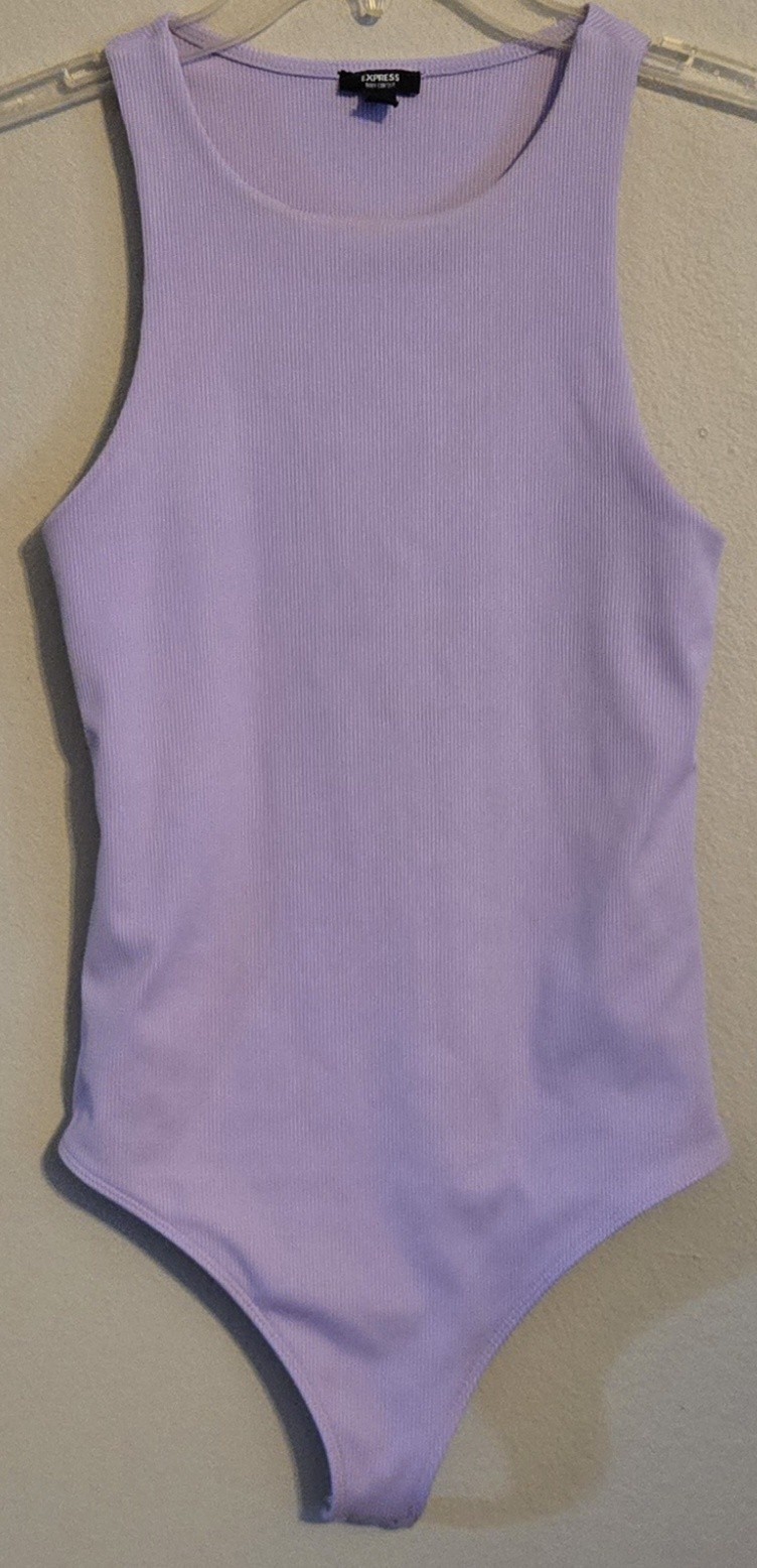 - Express Body Contour Ribbed Bodysuit Womens Small Lavender Stretch Top Preloved