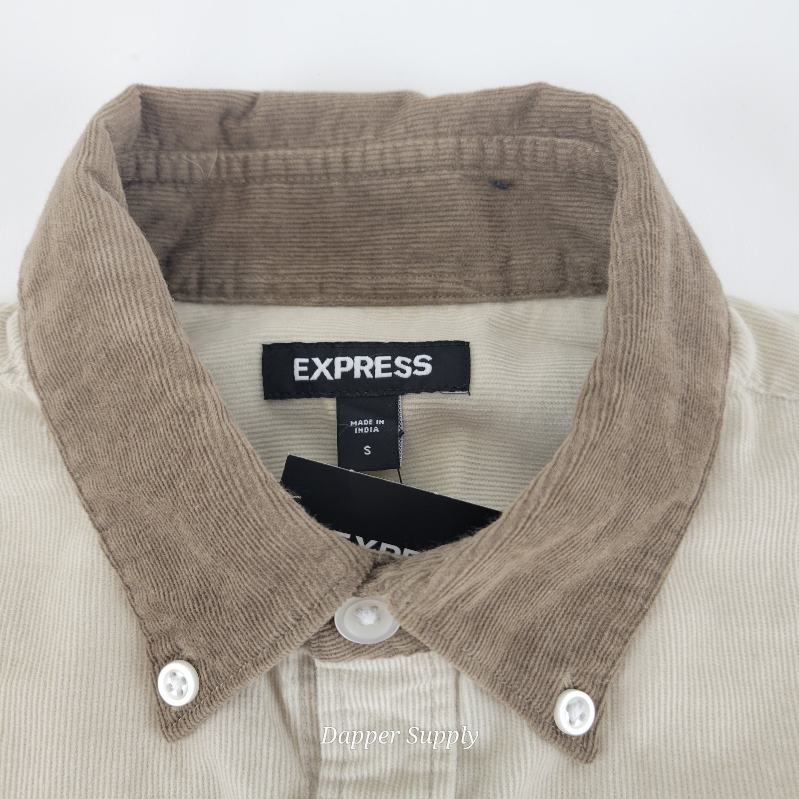 Express Men’s Sz Small Beige Corduroy Button-Down Shirt New