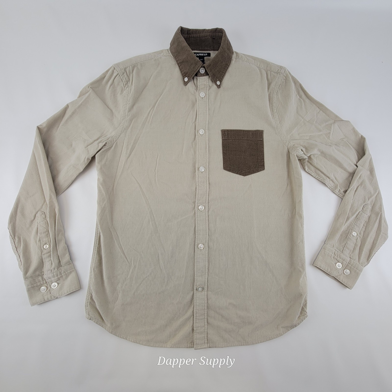 - Express Men’s Sz Small Beige Corduroy Button-Down Shirt New